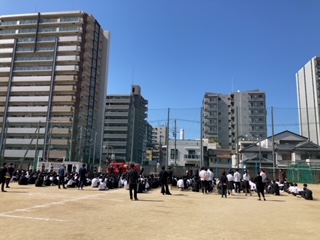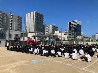 今日の6限目は地震と津波に対する避難訓練が行われました。緊張感をもって取り組めていました。本校の避難訓練のために、大正消防署 泉尾出張所から田辺指令、若松さん、柿内さん、平井さんが来てくださいました。ありがとうございました。併せて、地域のみなさまも急な訓練放送で驚かれたかと思いますが、ご協力をありがとうございました。