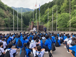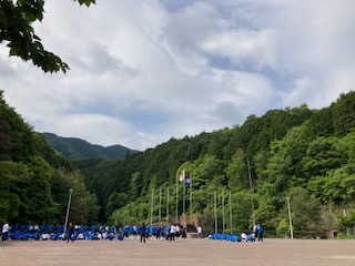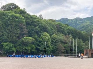 野外炊飯に向けての集合時間には予定より早く集合完了!退所点検を一発合格した班がたくさんありました。今から全体写真を撮ります。