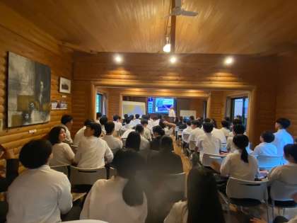 ついに、杉原千畝記念館に到着しました。講話を聞いています。事前学習もしっかりおこなっていたので、より理解が深まっていることと思います。