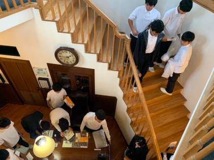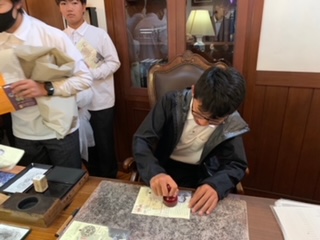 杉原千畝記念館の4組の見学の様子です。書類に印を押す体験も出来るようですね。