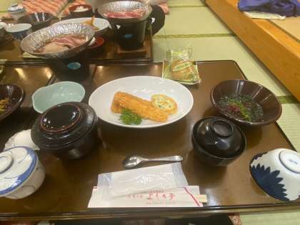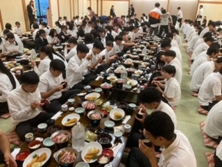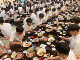 待ちに待った夕食です!とても豪勢です。しっかり食べて、明日からのエネルギーにしてください。