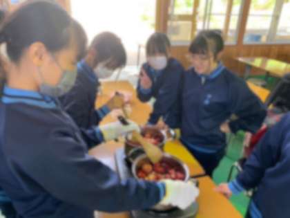 ジャムづくり体験の様子です。美味しく出来上がるといいですね。