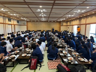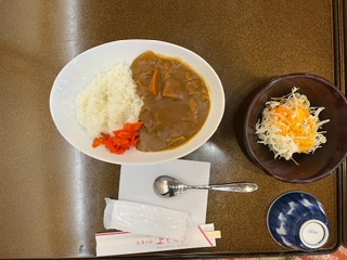 選択体験を満喫して、お腹ぺこぺこです。その空腹を満たす昼食がなんと カレー です。2、3年生が同じメニューです。
