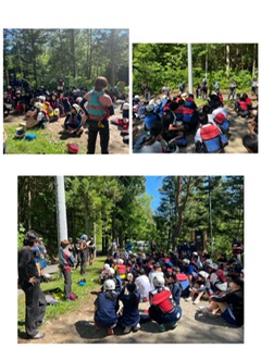 昨日の雨の影響で川が増水し、天竜川でのラフティングができなくなりました。代わりに、おおぐて湖でのラフティングとそらさんぽ天竜峡を行なうことになりました。