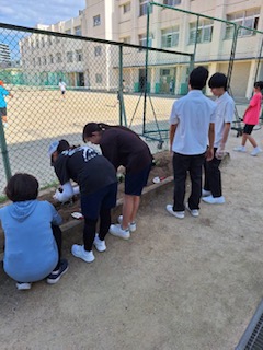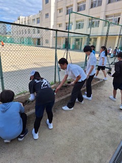 以前、生徒会新聞で呼びかけた園芸ボランティアに賛同してくれた生徒とそのお友達が急遽にも関わらず参加してくれました。