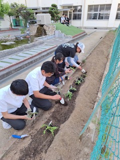 今日の放課後、いつも学校に彩りを与えてくれているお花の苗を元気アップさんと園芸ボランティアで協力して植えてくれました!