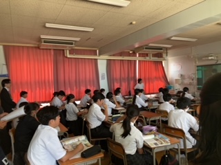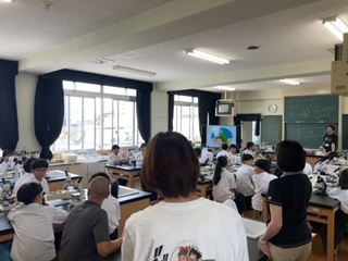 今日の6限目は、1年生で校内研究授業が行われています。生徒が分かる喜びを感じる授業探求のために、1年生の先生の授業を他の学年の先生方が見学しています。