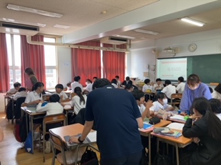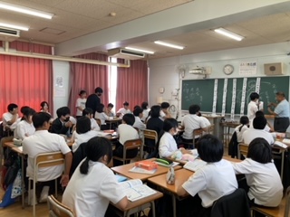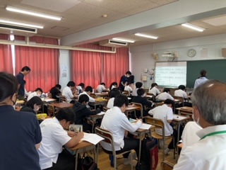 1-3 数学 大阪市総合教育センターからスクールアドバイザーの関本松生先生が授業見学に来られています。