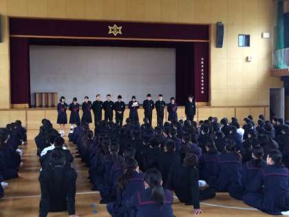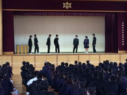 毎週水曜日にある3年生の学年集会で、学級委員の人たちが寸劇を披露してくれました。