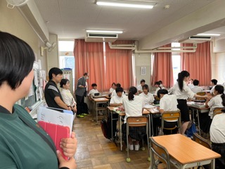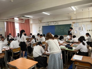 今日は教育実習生の集大成である研究授業が行われています。2限目は2年1組で英語の三原先生の授業でした。