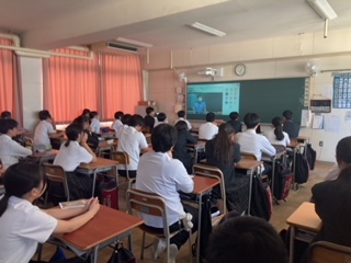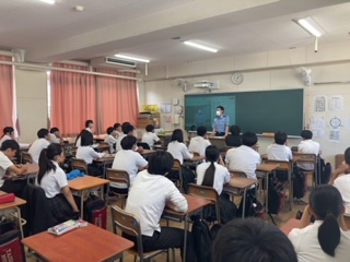 今日の5、6限目は大正警察の方を招いて、夏休みが近づいてきているこの時期に、薬物乱用防止教室と交通安全教室を行っています。