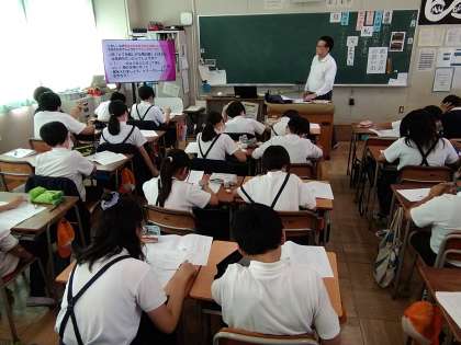 今日の5限目、本校と校区の小学校との小中連携の一環である出前授業が行われました。今回は泉尾北小学校での道徳の授業。本校の道徳教育推進教師の亘先生による授業では、子どもたちはとても盛んに意見交流し、主体的に発言していました。
