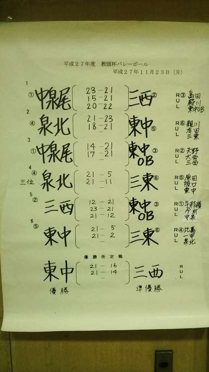 第32回 大正東中学校区PTA親睦 教頭杯バレーボールの結果