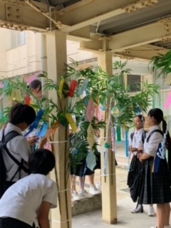 昨日から七夕飾りがスタートしています。さまざまな願い事を書いて、吊るして、季節を楽しみましょう!