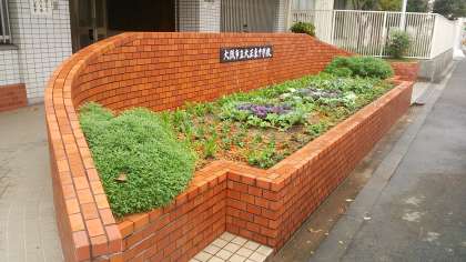 今日の午前、学校元気アップ地域本部の取り組みで、正門の緑地が整備されました。