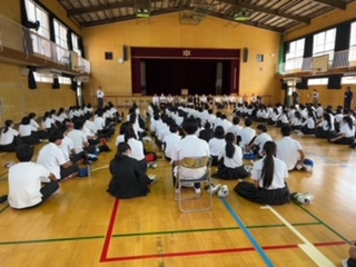 今日はキャリア教育の一環として、3年生は2〜4限目まで高校出前授業を行っています。