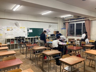 来週の体育大会に向けて、吹奏楽部は外で音量等を確かめる練習。教室では学級旗も大詰めです。帰りが遅くなりご心配をおかけしていることと思いますが、生徒が頑張って制作している学級旗の仕上がりを楽しみにしていただけたらと思います!
