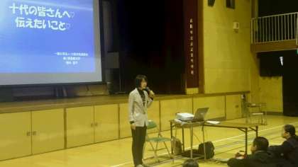 2年生では、12月11日(金)の6時間目に、助産師の橋本富子先生に来校していただき、「十代の皆さんへ 伝えたいこと」というテーマで性教育のセミナーを開いていただきました。「性には光と影があり、予期せぬ妊娠は影です。十代の人工妊娠中絶は年間2903人で、平均毎日8人が手術を受けています。それを防ぐためには、1.NO SEX、2.避妊、3.パートナーを決める、4.検査をする、というのが結論になります。相手とは、会って、たくさんおしゃべりして、時にはケンカして、認め合って、わかりあう関係をつくっていくことが大切です」というお話でした。