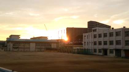 午前7時前、東門付近から「太陽が昇る」様子です。