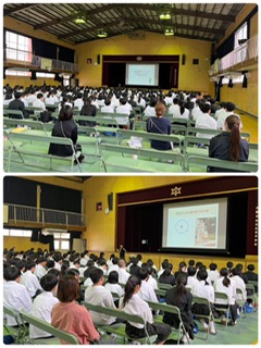 今日の5、6限目は1、2年生合同で体育館にて性教育を行いました。「多様な性について知ろう、考えよう」と題して、吉川ヒロさんを講師にお迎えして、ご講演いただきました。