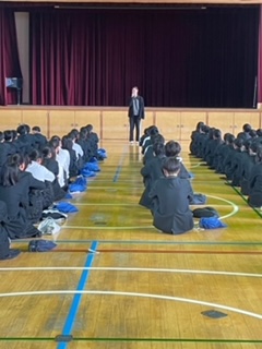 昨日月曜日の朝、2年生が学年集会を行いました。