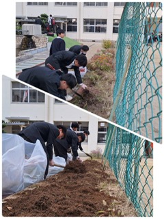12月4日(水)の放課後に、今年から行われている園芸ボランティアの活動がありました。みんなが力を合わせて、きれいに耕してくれました!