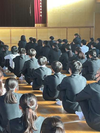 今朝は2年生が学年集会を行いました。