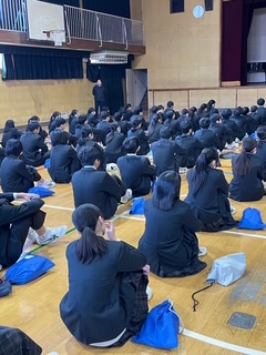 ?1限目 2年生は体育館にて修学旅行の取組を行いました。