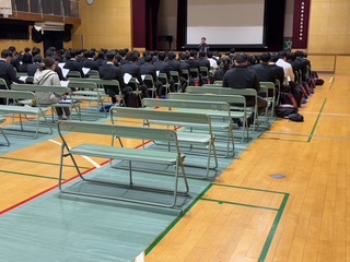 今日の5限目、3年生は私学受験に向けての最終確認をする事前指導の時間でした。試験当日の朝はかなり冷え込むようです。前日に荷物のチェックをして、当日は落ち着いて出発しましょう。