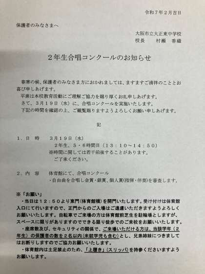 今日は合唱コンクールです。
