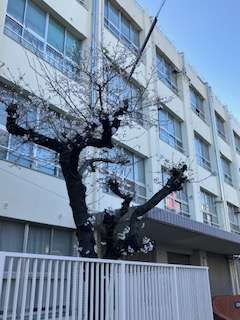 正門横の桜が少しずつ咲き始めています。