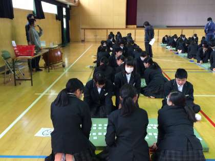 1年生は、1月22日の5・6限を使って、百人一首大会のリハーサルをしました。本番の2月5日に向けて、みんな真剣な表情でした。