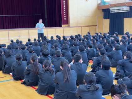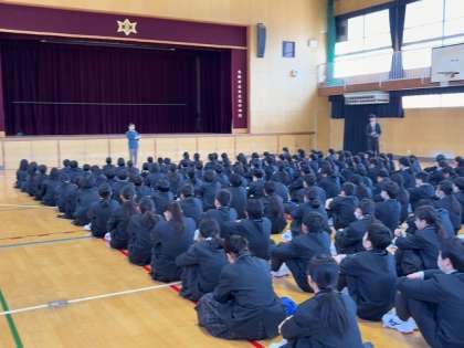 1年生体育館で学校生活についてお話ししていただきました。