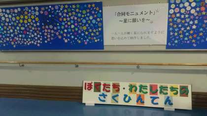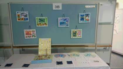 本校からは、ビーズアート、コースター、うちわを出展しました。