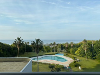 2日目の朝は澄み渡る青空のもと、スタートです。長時間のバス移動で疲れもあるようですが、全員元気です。今から朝ご飯です。