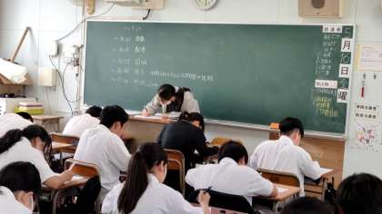 今日の6限目はBL(Basic Learning)という基礎力向上に向けての取組みを行っています。それと兼ねて、1年生は中間テストのプレテストを数学で実施しています。