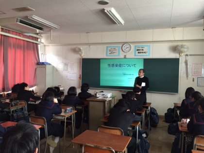 本日3年生対象に講師の先生に来ていただき性教育を行いました。内容は性感染症に関するもので、どのクラスも真剣に講義を聞いて学習しました。