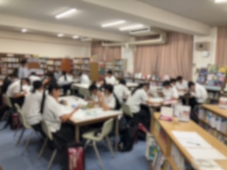 希望制ですが、たくさんの生徒が参加しています。あまりの人数の多さに1年生はミーティングルーム、2、3年生は図書室と2カ所に分かれて行われていました。