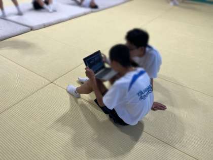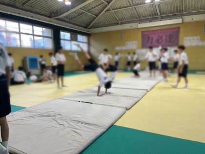 授業では、動画撮影を活用して自分の動きを振り返る時間を設けています。「ここは手のつき方を工夫しよう」「もう少し足をのばせるかも」と、自分で気づき、考えながら技の習得に励んでいます。