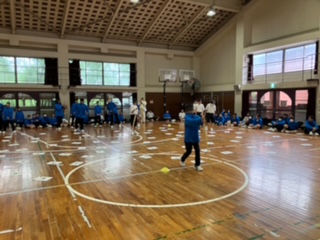 最終種目はマインフィールドでした。目隠しをした人と指示役に分かれ、目隠しをした人を誘導します。その時、マインフィールドと書かれた紙を踏んだら失格になります。一番早くゴールに着くと点数アップがあります。