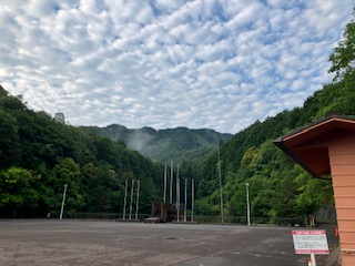 おはようございます。貝塚はひんやりとした朝です。雲は残っていますが、雨はやみ、鳥の鳴き声が聞こえてきています。みんなぐっすり眠れたようで朝から元気です。