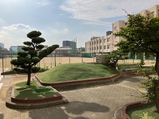 今日は青空が広がっています。そして朝から強い日差しが照りつけています。朝からこまめな水分補給で熱中症予防に努めましょう。また、汗もかなりかくと思いますので、タオルを準備しましょう。