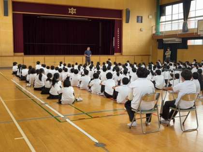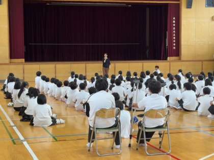 本日、1年生は学年集会をおこないました。