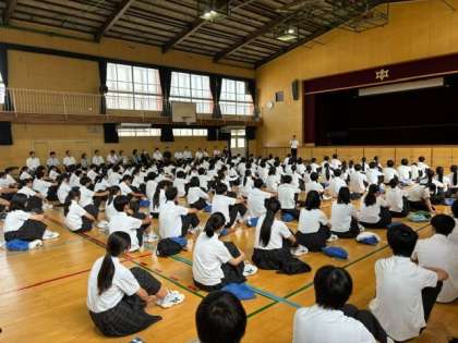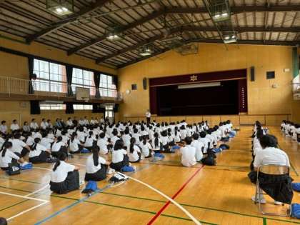 今日はキャリア教育と進路学習の一環として、3年生は2〜4限目まで高校出前授業を行っています。