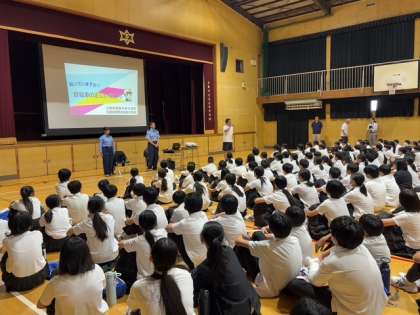 本日、体育館にて、大正警察の方に来ていただき講話していただきました。