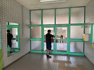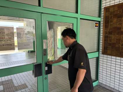 懇談が終わった後、扉のロックを回し解除してもらうか、左のスイッチを押してロック解除してから、扉を開けておかえりください。
