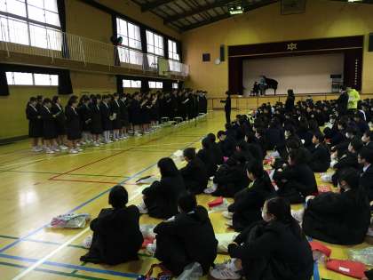 2月29日(月)6限、送別式に向けた1・2年生合同の練習も2回目を迎えました。