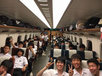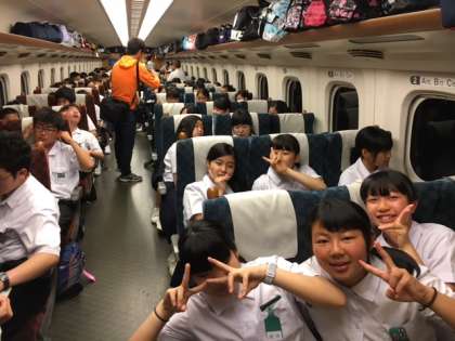 新幹線の車内の様子です。みんなとても楽しんでいます。