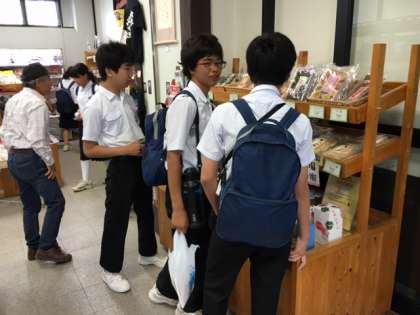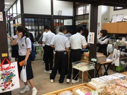 民泊体験が終わり、早めに出水駅に集まって来て、お土産の購入をしています。