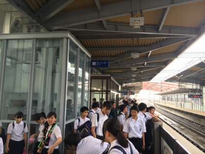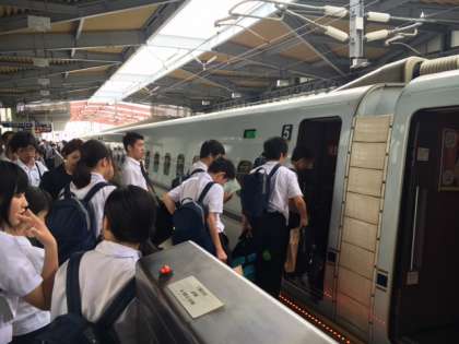 出水駅のホームの様子と新幹線に乗り込むところです。
